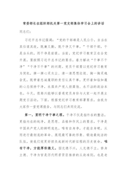 / 【七哥公文】2024年:常委部长在组织部机关第一党支部集体学习会上的讲话+更多免费公文+VX:QiGeGongWen2024