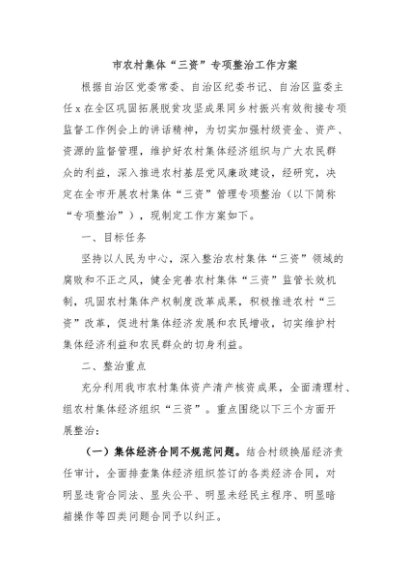 / 【七哥公文】2024年:市农村集体“三资”专项整治工作方案+更多免费公文+VX:QiGeGongWen2024