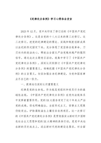 / 【七哥公文】2024年:《纪律处分条例》学习心得体会发言+更多免费公文+VX:QiGeGongWen2024