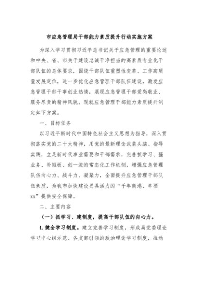 / 【七哥公文】2024年:市应急管理局干部能力素质提升行动实施方案+更多免费公文+VX:QiGeGongWen2024