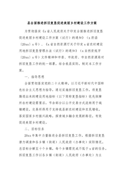 / 【七哥公文】2024年:县全面推进拆旧复垦促进美丽乡村建设工作方案+更多免费公文+VX:QiGeGongWen2024