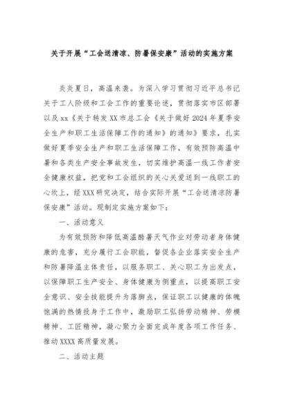 / 【七哥公文】2024年:关于开展“工会送清凉、防暑保安康”活动的实施方案+更多免费公文+VX:QiGeGongWen2024