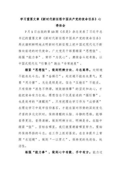 【七哥公文】2024年:学习重要文章《新时代新征程中国共产党的使命任务》心得体会+更多免费公文+VX:QiGeGongWen2024
