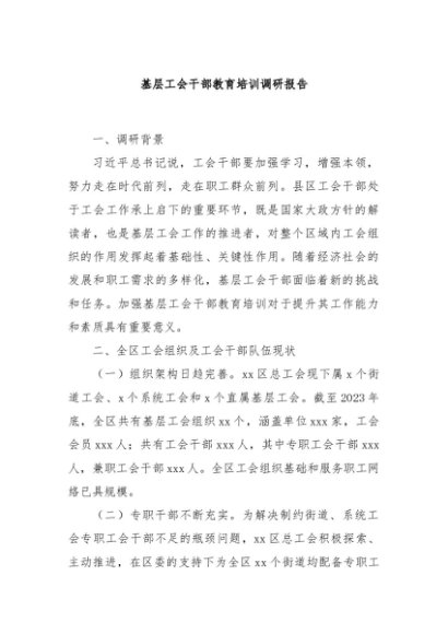 / 【七哥公文】2024年:基层工会干部教育培训调研报告+更多免费公文+VX:QiGeGongWen2024