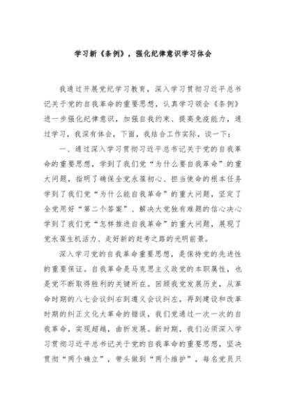 / 【七哥公文】2024年:学习新《条例》,强化纪律意识学习体会+更多免费公文+VX:QiGeGongWen2024