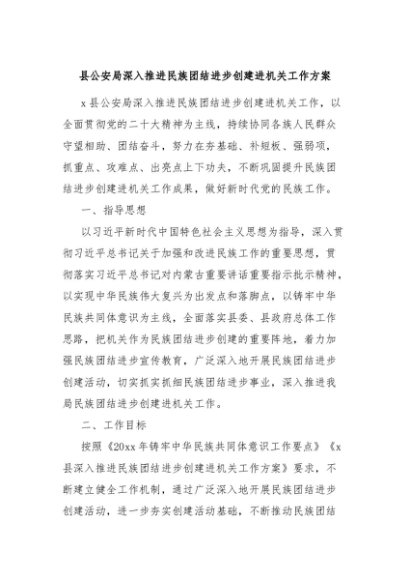 / 【七哥公文】2024年:县公安局深入推进民族团结进步创建进机关工作方案+更多免费公文+VX:QiGeGongWen2024