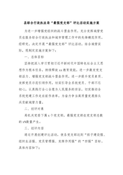 / 【七哥公文】2024年:县综合行政执法局“最强党支部”评比活动实施方案+更多免费公文+VX:QiGeGongWen2024