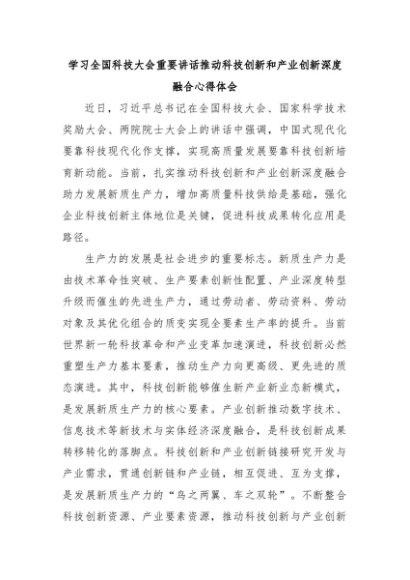 【七哥公文】2024年:学习全国科技大会重要讲话推动科技创新和产业创新深度融合心得体会+更多免费公文+VX:QiGeGongWen2024