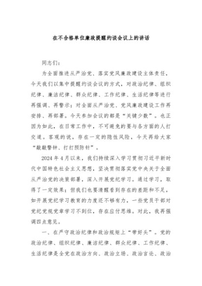 / 【七哥公文】2024年:在不合格单位廉政提醒约谈会议上的讲话+更多免费公文+VX:QiGeGongWen2024