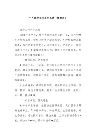 / 【七哥公文】2024年:个人驻村工作半年总结(简单版)+更多免费公文+VX:QiGeGongWen2024