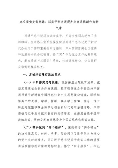 【七哥公文】2024年:办公室党支部党课:以实干担当展现办公室系统新作为新气象+更多免费公文+VX:QiGeGongWen2024