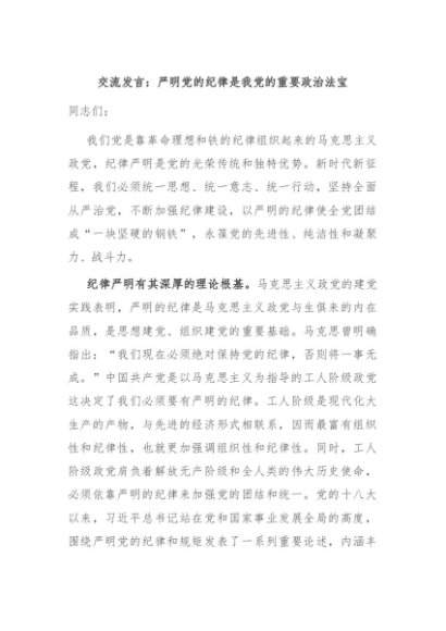 / 【七哥公文】2024年:交流发言:严明党的纪律是我党的重要政治法宝+更多免费公文+VX:QiGeGongWen2024
