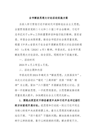 / 【七哥公文】2024年:全市解放思想大讨论活动实施方案+更多免费公文+VX:QiGeGongWen2024
