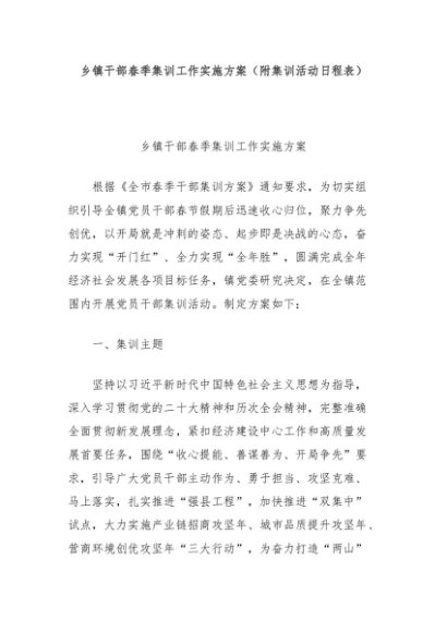 / 【七哥公文】2024年:乡镇干部春季集训工作实施方案(附集训活动日程表)+更多免费公文+VX:QiGeGongWen2024