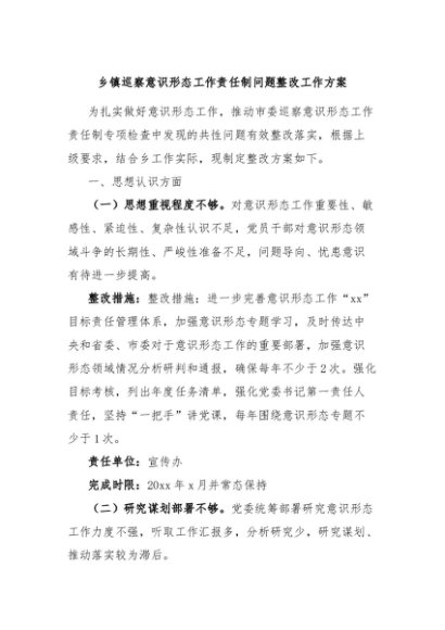 / 【七哥公文】2024年:乡镇巡察意识形态工作责任制问题整改工作方案+更多免费公文+VX:QiGeGongWen2024