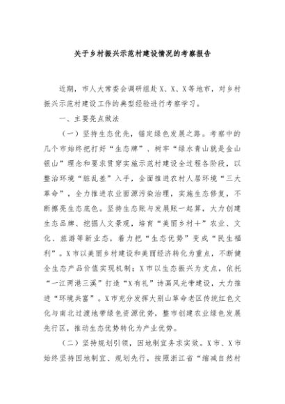 / 【七哥公文】2024年:关于乡村振兴示范村建设情况的考察报告+更多免费公文+VX:QiGeGongWen2024