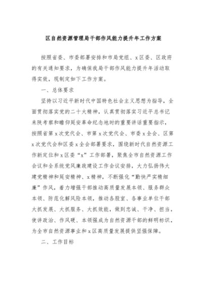 / 【七哥公文】2024年:区自然资源管理局干部作风能力提升年工作方案+更多免费公文+VX:QiGeGongWen2024