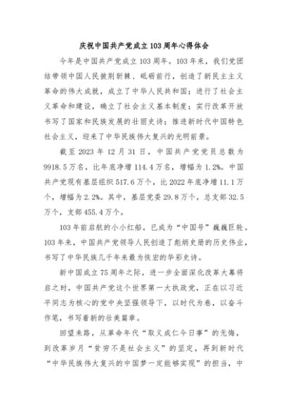 / 【七哥公文】2024年:庆祝中国共产党成立103周年心得体会+更多免费公文+VX:QiGeGongWen2024