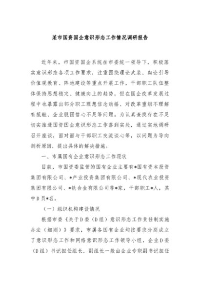 / 【七哥公文】2024年:某市国资国企意识形态工作情况调研报告+更多免费公文+VX:QiGeGongWen2024