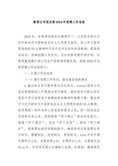 / 【七哥公文】2024年:集团公司党支部2024年党建工作总结+更多免费公文+VX:QiGeGongWen2024