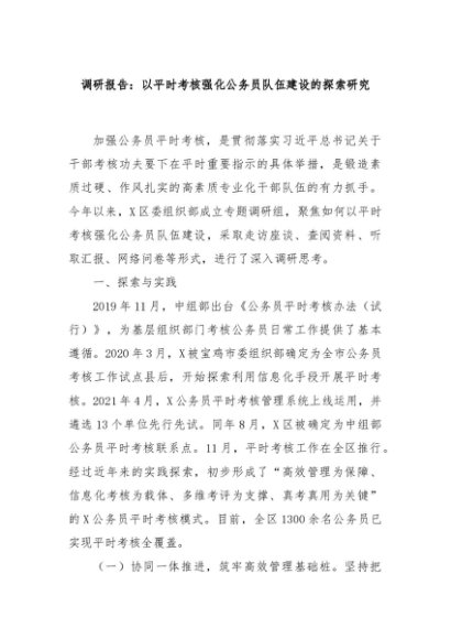 / 【七哥公文】2024年:调研报告:以平时考核强化公务员队伍建设的探索研究+更多免费公文+VX:QiGeGongWen2024
