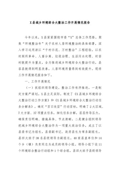 / 【七哥公文】2024年:X县城乡环境综合大整治工作开展情况报告+更多免费公文+VX:QiGeGongWen2024