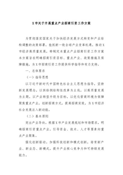 / 【七哥公文】2024年:X市关于开展重点产业招商引资工作方案+更多免费公文+VX:QiGeGongWen2024