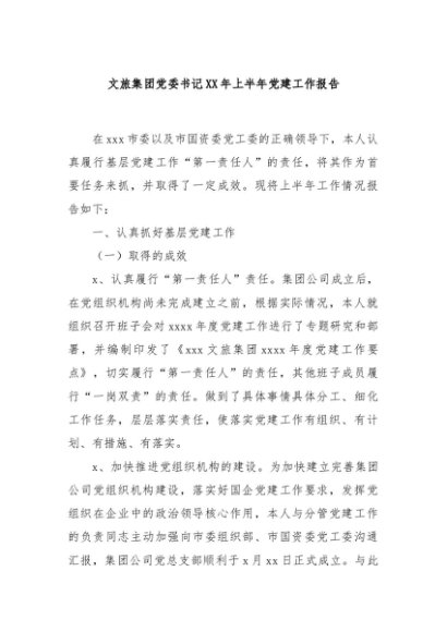 / 【七哥公文】2024年:文旅集团党委书记XX年上半年党建工作报告+更多免费公文+VX:QiGeGongWen2024