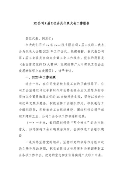 / 【七哥公文】2024年:XX公司X届X次会员代表大会工作报告+更多免费公文+VX:QiGeGongWen2024