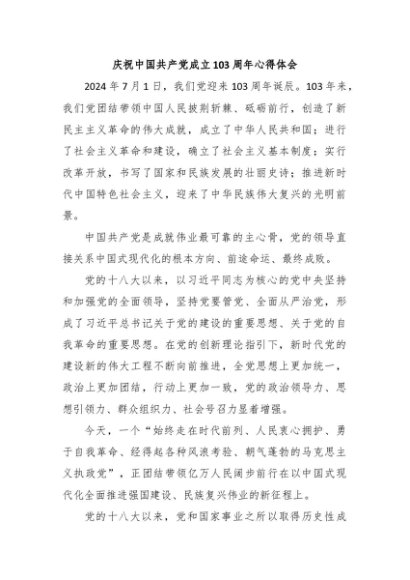 / 【七哥公文】2024年:庆祝中国共产党成立103周年心得体会3+更多免费公文+VX:QiGeGongWen2024