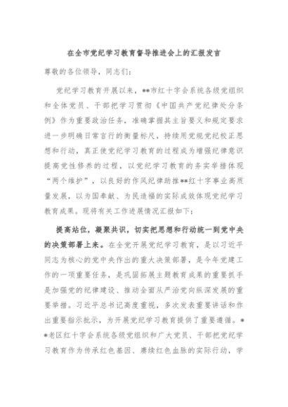/ 【七哥公文】2024年:在全市党纪学习教育督导推进会上的汇报发言+更多免费公文+VX:QiGeGongWen2024