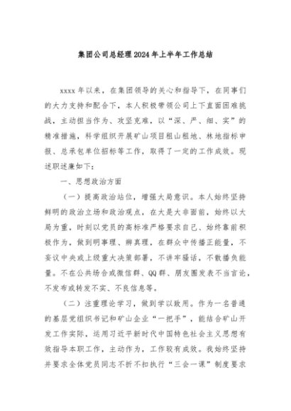 / 【七哥公文】2024年:集团公司总经理2024年上半年工作总结+更多免费公文+VX:QiGeGongWen2024
