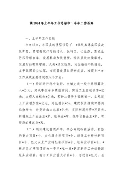 / 【七哥公文】2024年:镇2024年上半年工作总结和下半年工作思路+更多免费公文+VX:QiGeGongWen2024