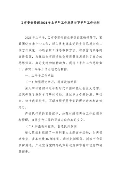 【七哥公文】2024年:X市委宣传部2024年上半年工作总结与下半年工作计划+更多免费公文+VX:QiGeGongWen2024