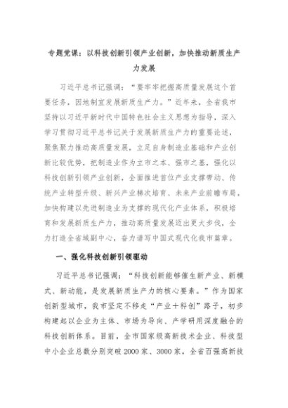 【七哥公文】2024年:专题党课:以科技创新引领产业创新,加快推动新质生产力发展+更多免费公文+VX:QiGeGongWen2024