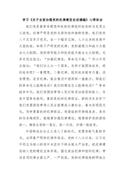 / 【七哥公文】2024年:学习《关于全面加强党的纪律建设论述摘编》心得体会+更多免费公文+VX:QiGeGongWen2024