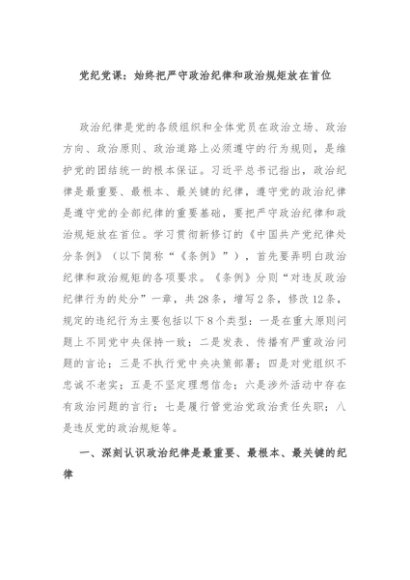 / 【七哥公文】2024年:党纪党课:始终把严守政治纪律和政治规矩放在首位+更多免费公文+VX:QiGeGongWen2024