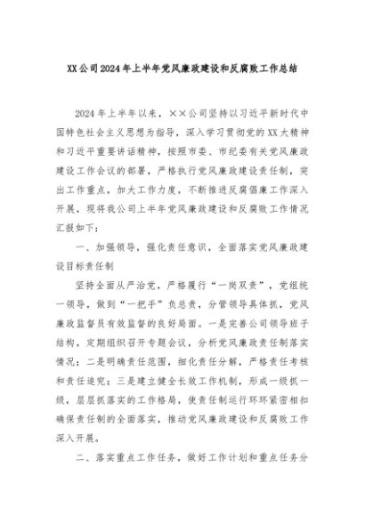 【七哥公文】2024年:XX公司2024年上半年党风廉政建设和反腐败工作总结+更多免费公文+VX:QiGeGongWen2024