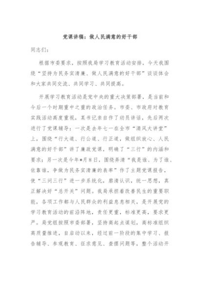/ 【七哥公文】2024年:党课讲稿:做人民满意的好干部+更多免费公文+VX:QiGeGongWen2024