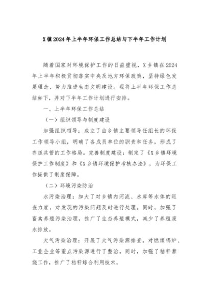 / 【七哥公文】2024年:X镇2024年上半年环保工作总结与下半年工作计划+更多免费公文+VX:QiGeGongWen2024