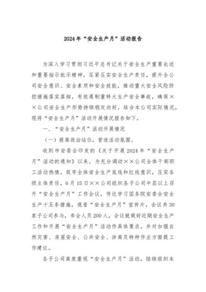 / 【七哥公文】2024年:2024年“安全生产月”活动报告+更多免费公文+VX:QiGeGongWen2024
