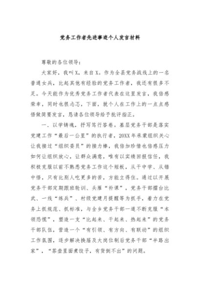 / 【七哥公文】2024年:党务工作者先进事迹个人发言材料+更多免费公文+VX:QiGeGongWen2024
