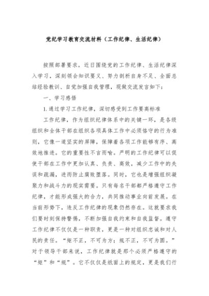 / 【七哥公文】2024年:党纪学习教育交流材料(工作纪律、生活纪律)+更多免费公文+VX:QiGeGongWen2024