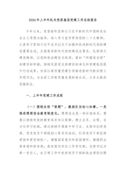 / 【七哥公文】2024年:2024年上半年机关党委基层党建工作总结报告+更多免费公文+VX:QiGeGongWen2024