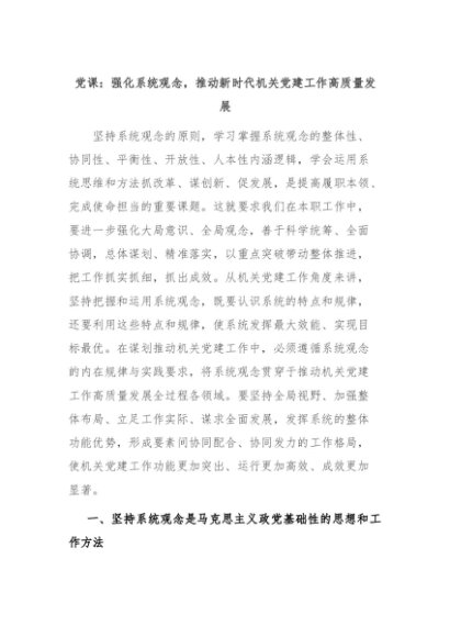 【七哥公文】2024年:党课:强化系统观念,推动新时代机关党建工作高质量发展+更多免费公文+VX:QiGeGongWen2024