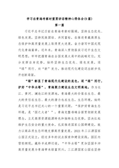 / 【七哥公文】2024年:(9篇)学习在青海考察时重要讲话精神心得体会+更多免费公文+VX:QiGeGongWen2024