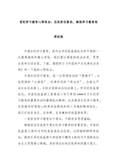 【七哥公文】2024年:党纪学习教育心得体会:压实责任落实,确保学习教育取得实效+更多免费公文+VX:QiGeGongWen2024