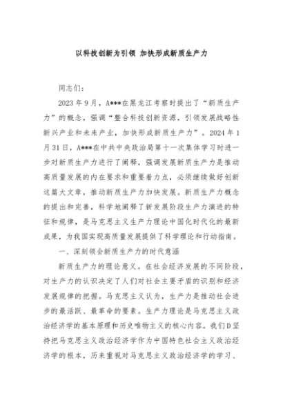 / 【七哥公文】2024年:以科技创新为引领 加快形成新质生产力+更多免费公文+VX:QiGeGongWen2024