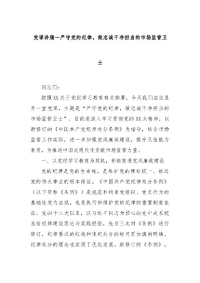 【七哥公文】2024年:党课讲稿-严守党的纪律,做忠诚干净担当的市场监管卫士+更多免费公文+VX:QiGeGongWen2024