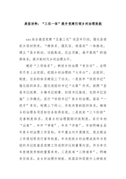 / 【七哥公文】2024年:典型材料:“三位一体”提升党建引领乡村治理效能+更多免费公文+VX:QiGeGongWen2024
